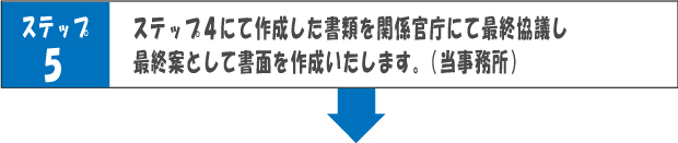 上記ステップ4にて作成した書類を基に、関係官庁と協議を繰り返し、